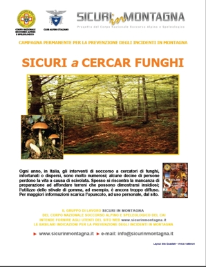 Ogni anno, in Italia, gli interventi di soccorso a cercatori di funghi, infortunati o dispersi, sono molto numerosi; alcune decine di persone perdono la vita a causa di scivolata. Spesso si riscontra la mancanza di preparazione ad affondare terreni che possono dimostrarsi insidiosi; l’utilizzo dello stivale di gomma, ad esempio, è ancora troppo diffuso.